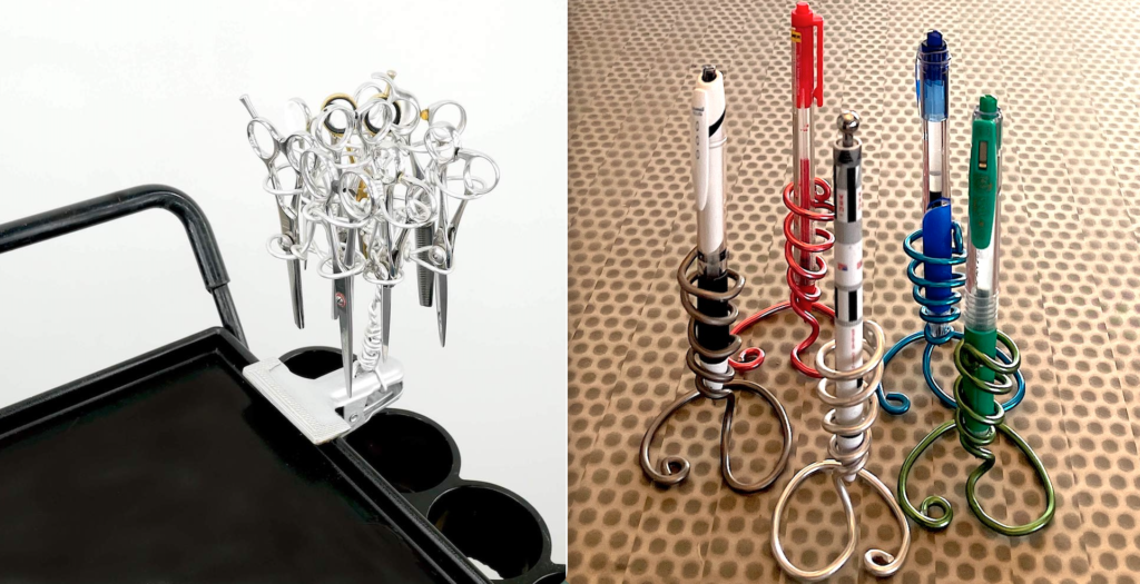 2000年ごろに閃いたペン立て&シザー収納(アルミ線で手作り:実用性は良好)